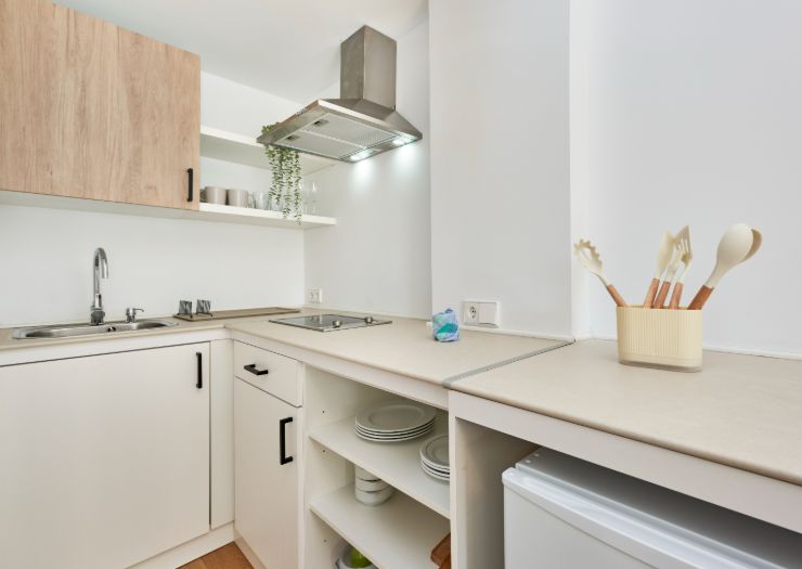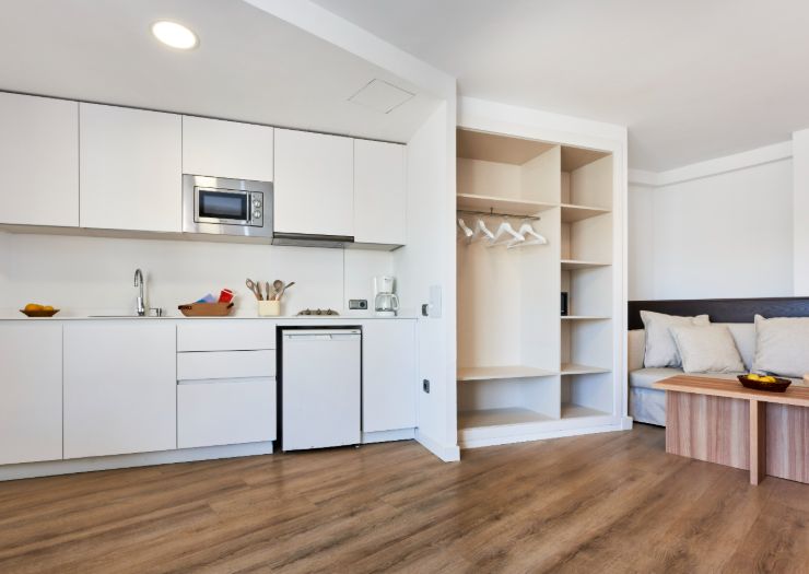 Cada apartamento, recientemente reformado, cuenta con un dormitorio equipado con cama de matrimonio o dos camas individuales, además de un acogedor sofá cama en el salón para mayor flexibilidad. La cocina, completamente nueva y de primera calidad, te brinda la libertad de preparar tus comidas. Todos disponen de terraza al exterior.