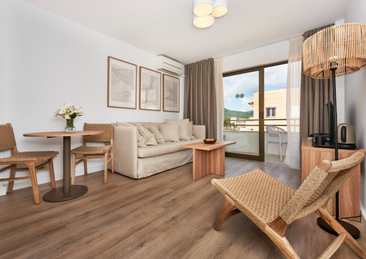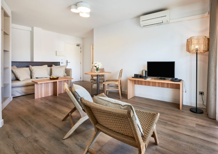 Disfruta de nuestras habitaciones y apartamentos, diseñados con el confort en mente y creando espacios que te envolverán en una atmósfera de relax absoluto.